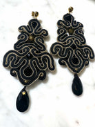Deze zwarte statement oorbellen uit onze Dreams-collectie kunnen worden omschreven als ware meesterwerken. Handgemaakt van stof, met behulp van een 16e-eeuwse techniek en afgewerkt met een schitterende diamand-achtige kristallen.