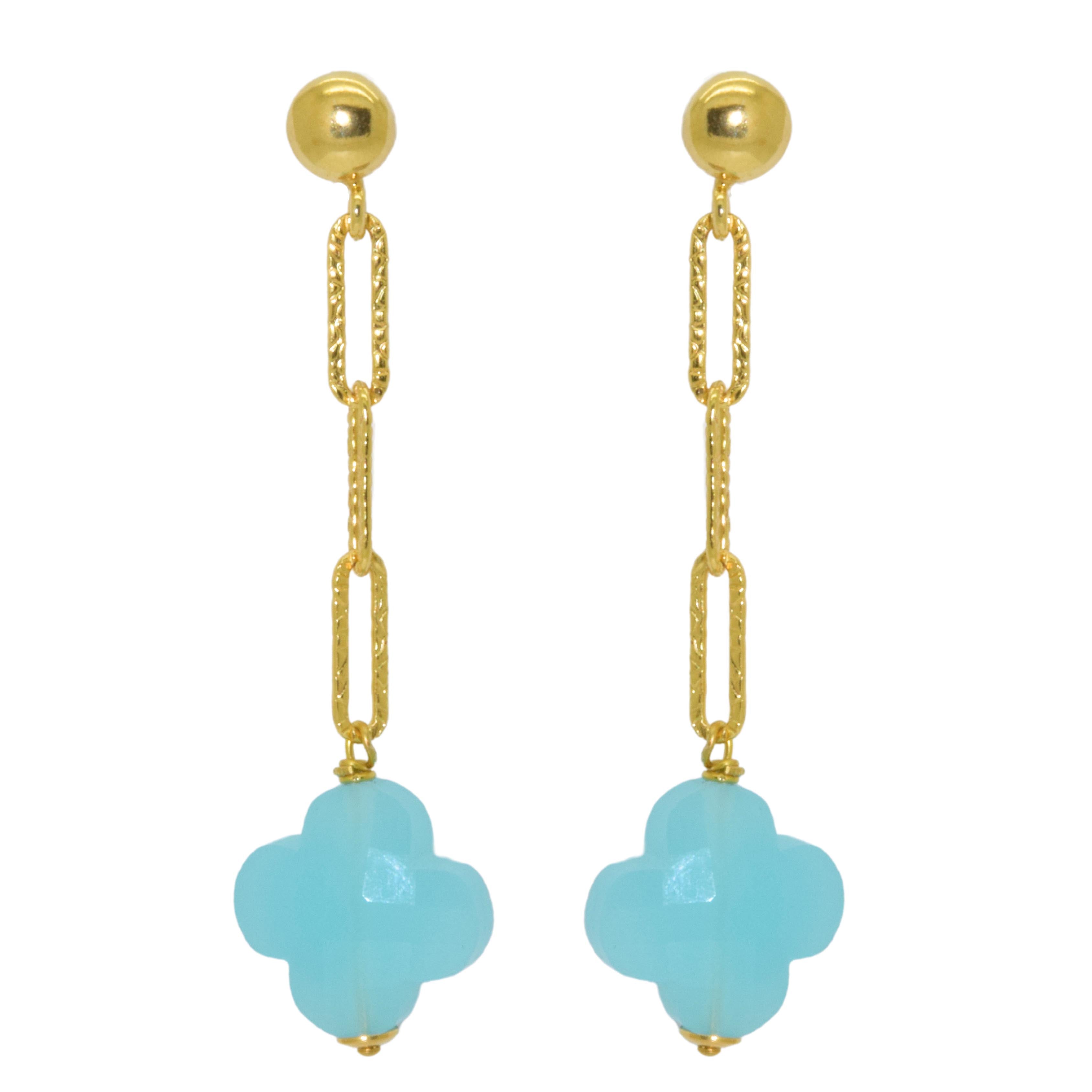 Deze prachtig verfijnde statement oorbellen zijn zeer elegant en gewoon in het oog springende must-haves! Gemaakt met ijsblauwe kristallen klavertjes.