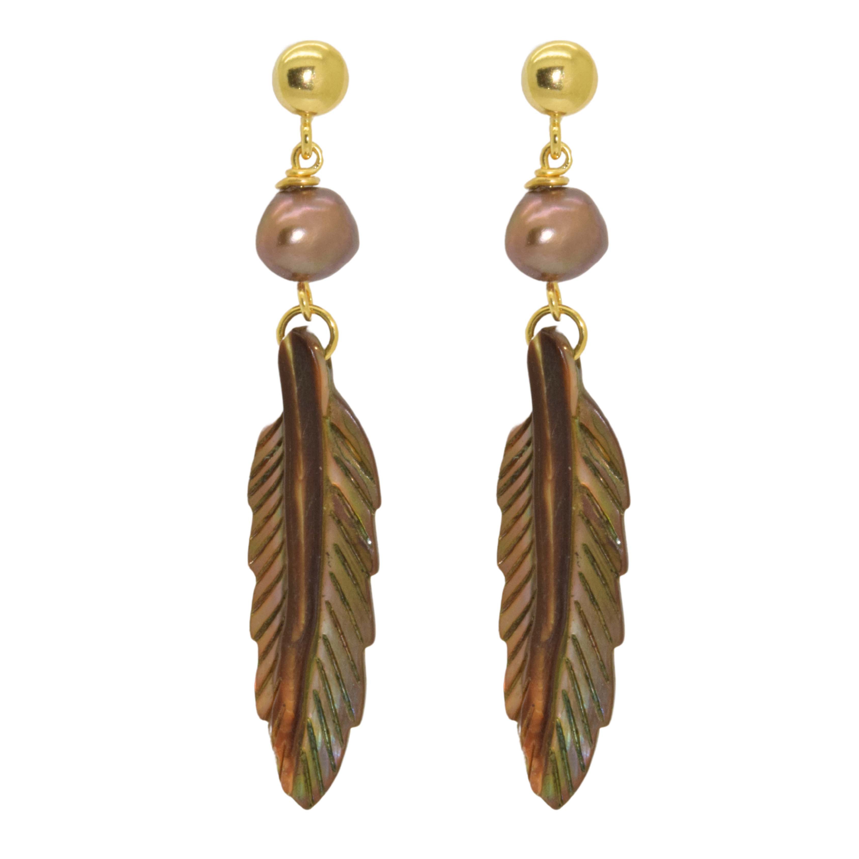 Super elegant! Deze parelmoeren veertjes oorbellen hebben zoetwaterparels aan de bovenkant.