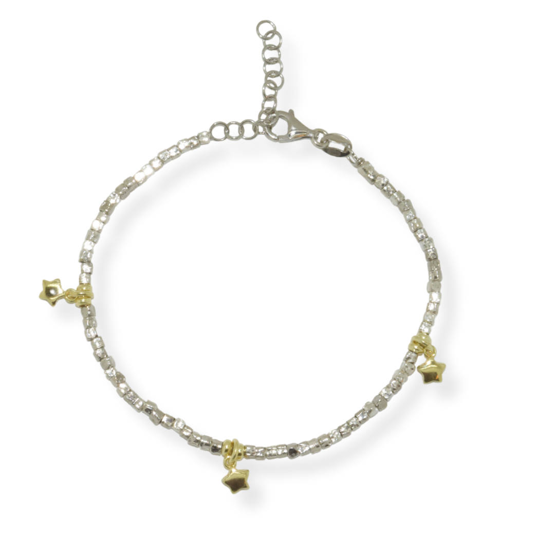 This 925 silver with gold plated stars bracelet takes your outfit to a higher level and makes you shine on every occasion. The bracelet adds a subtle yet striking accent to your look. Mix and match this bracelet with other Miccy's bracelets for the ultimate statement look.