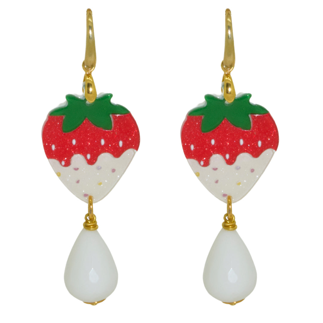 Doux et amusant ! Ces boucles d'oreilles Strawberry Jam sont un véritable régal pour vos oreilles. Les petites fraises associées à la perle sont subtiles mais accrocheuses et féminines.