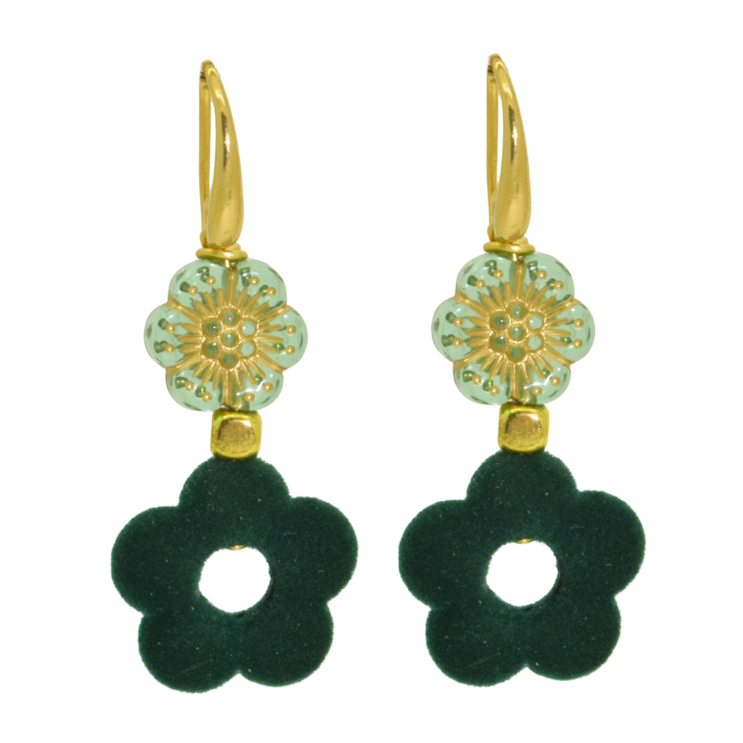 Flower Power Teddy, un clin d'œil aux années 70. La série Flower Power est fabriquée à partir de résines de haute qualité, finies avec une couche de velours et de perles d'eau douce. Ces boucles d'oreilles tendance sont moulées et finies à la main. Les couleurs douces et chaudes du velours font de ces boucles d'oreilles quelque chose que vous voulez câliner !