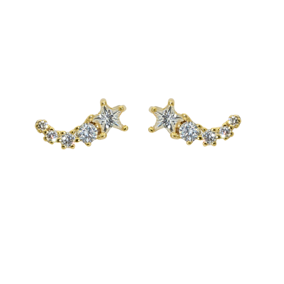 Deze elegante ear climbers volgen soepel de curve van je oorlel. Het ontwerp begint bij een stervormige steen, die doet denken aan dat ene fonkelende moment waarop alles even klopt. Daaromheen schitteren meerdere kristallen in verschillende formaten: luchtig, speels en toch verfijnd. Het warme 18K vergulde zilver laat elke Swarovski steen tot leven komen.