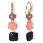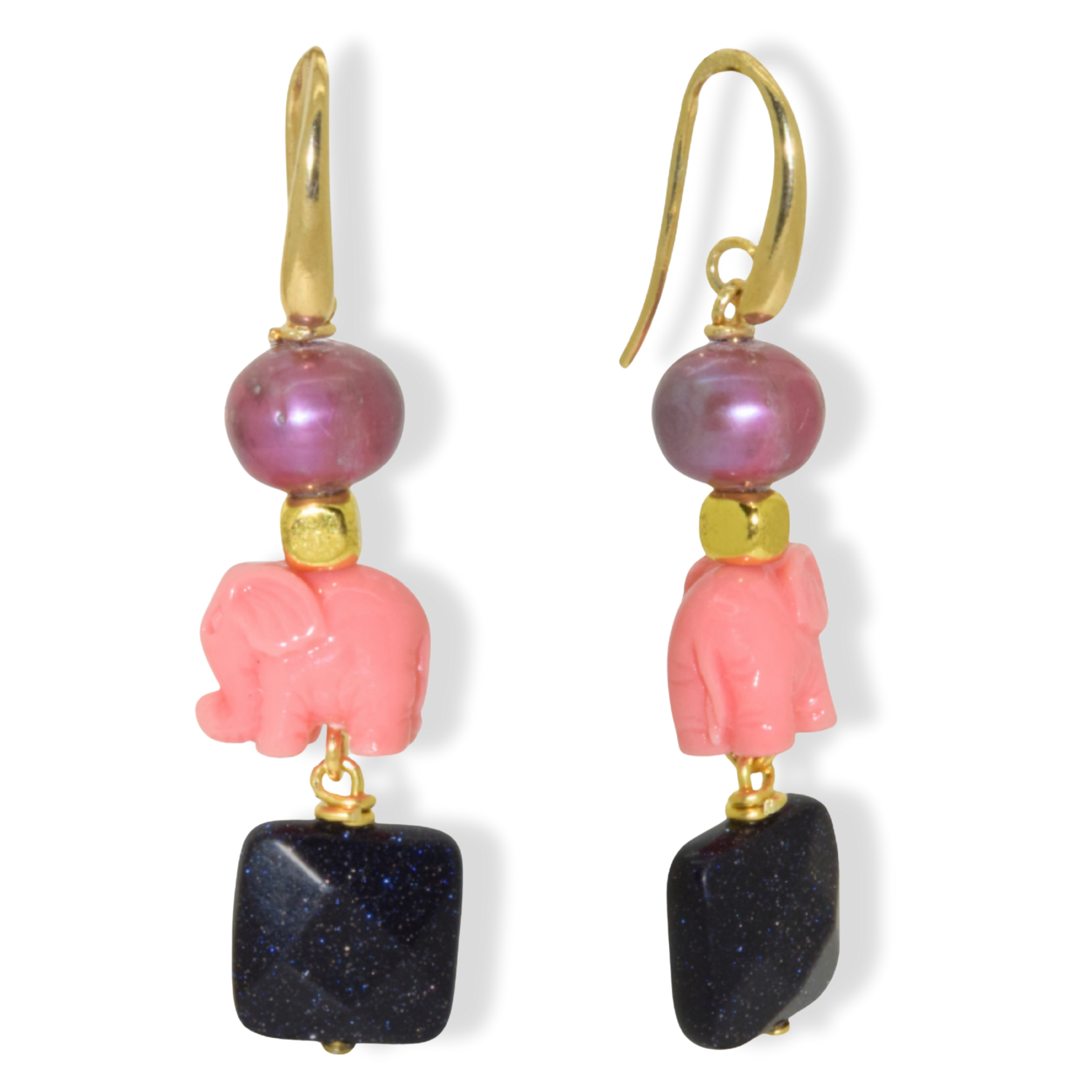 Deze statement oorbellen spelen met contrasten: een zachtroze olifantje, een glanzende parels en een diep middernachtblauwe gold steen die bij elke beweging subtiel fonkelt. Afgewerkt met Miccy’s kenmerkende oorhaak van 18k verguld goud voelt dit ontwerp krachtig én vrouwelijk, speels én verfijnd.